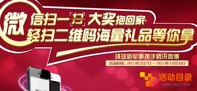 环球军事微信扫一扫送Q币 Iphone5 2013年12月30日结束