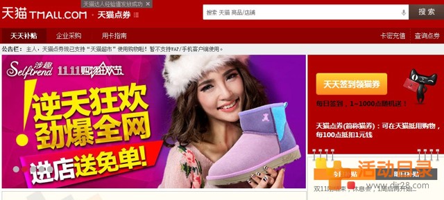 通过每日签到可以获得1-1000天猫点券,可在天猫抵用购物,每100点抵扣1元钱;跟集分宝的使用方式一样,不同的是天猫点券只限在天猫使用,而集分宝可以同时支持淘宝集市和天猫使用。活动目录网站的网友快去参加试试运气吧!