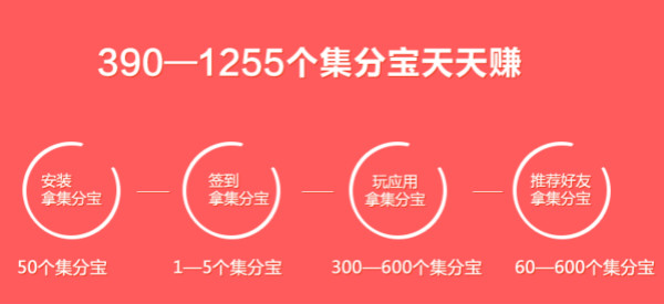 新用户首次安装打开赚钱儿可以立即得到50个集分宝;推荐好友可获得60个集分宝+20%分成奖励;参加赚钱儿里面的下载任务可以获得1255-1万集分宝(上不封顶)。活动目录网站的网友快去参加试试运气吧!