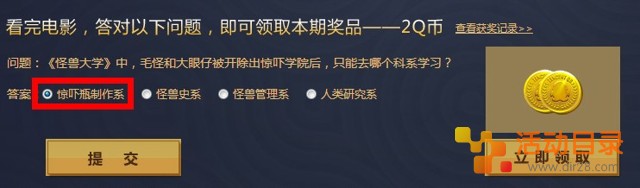 每周一部推荐电影,每部电影一道问题,答对即可领取丰厚奖品,当月答对3道题的用户还可抽取至尊影迷大奖——怪兽大学官方限量公仔、iPhone5s等大奖等你拿。活动目录网站的网友快去参加试试运气吧!