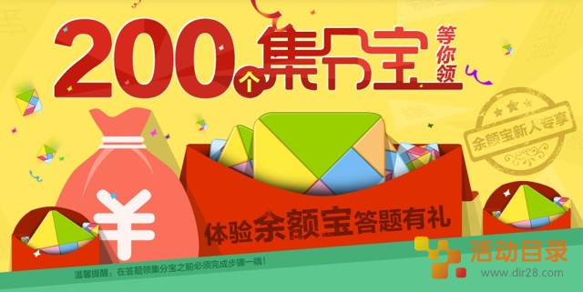 限余额宝新用户参加(须满18周岁有大陆身份证),已获得5元余额宝支付红包用户不能参与;完成体验余额宝才能参与答题领奖,答题完成后自动领取200个集分宝。活动目录网站的网友快去参加试试运气吧!