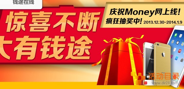 钱途在线庆Money网上线疯狂抽奖送现金 Iphone5s 2014年1月9日结束