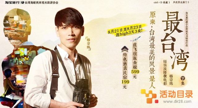 8月22日00:00-8月24日24:00期间,凡通过电脑购买淘宝旅行台湾目的地机票的ID,即可获赠200元的机票红包(可在电脑和手机端购买机票使用)。活动目录网站的网友快去抢购吧!