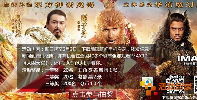 下载腾讯新闻客户端 转发任意微博拿2000个Q币 2014年2月2日结束 发布日期:2014-01-27 13:50:06 / QQ活动网 • 围观 ... 次 活动介绍: 即日起至2月2日,下载腾讯新闻手机客户端,转发任意微博到腾讯微博,即可获得2000个Q币的奖项资格。活动目录网站的网友快去参加试试运气吧! 活动时间: 截止到2月2日 活动奖励: Q币,电影票 立即参与:https://www.huodong8.com/1340.html