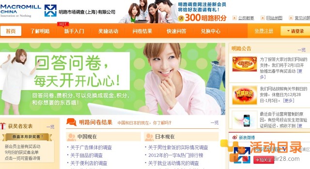 每日登陆明路调查网可以拿到5个积分的登陆奖励;同时参与调查还可以获得每份300-500积分不等的奖励,1积分=1集分宝,可以在积分兑换那里直接兑换到支付宝。活动目录网站的网友快去参加试试运气吧!