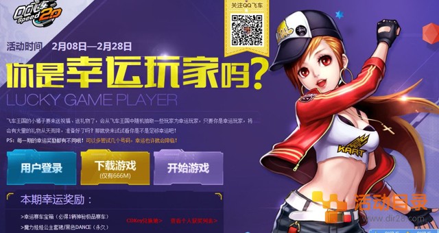 QQ飞车你是幸运玩家吗 回归游戏拿QQ飞车紫钻 1000点券 2014年2月28日结束