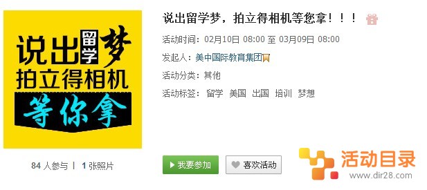 人人网说出留学梦 拍立得相机 U盘等你拿 2013年3月9日结束