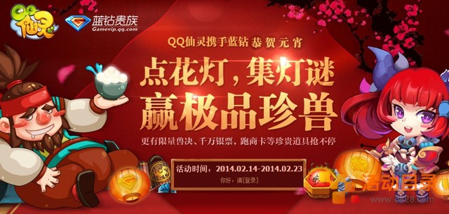 QQ蓝钻点花灯集灯谜拿年费蓝钻,赢仙灵极品珍兽 2014年2月23日结束