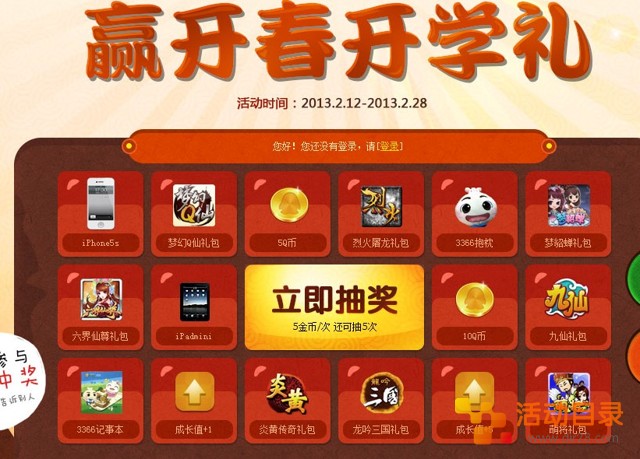 3366赢开春开学礼金币大抽奖拿Q币,Iphone5s 2014年2月28日结束