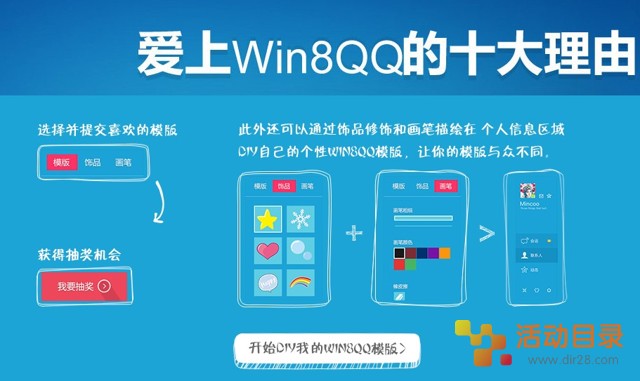参与爱上win8QQ的十大理由拿Q币,马年公仔 2014年2月28日结束 发布日期:2014-02-15 17:34:32 / QQ活动网 • 围观 ... 次 活动介绍: 登陆QQ号码,制作属于自己的win8QQ皮肤,即可进行抽奖。活动目录网站的网友快去参加试试运气吧! 活动时间: 截止到2014年2月28日 活动奖励: Q币,马年公仔 立即参与:https://www.huodong8.com/1458.html