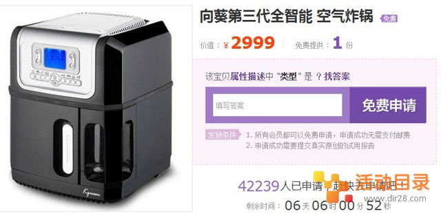 免费试用 向葵第三代全智能 空气炸锅 2014年2月23日结束
