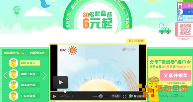肯德基活力早餐活动分享拿QQ红钻,Ipad mini 2014年3月23日结束