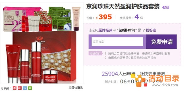 免费试用 京润珍珠天然盈润护肤品套装 2014年2月26日结束