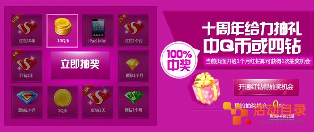 QQ秀十周年 红钻超级回馈免费抽奖拿Q币、Ipad、十年红钻2013年9月15日结束