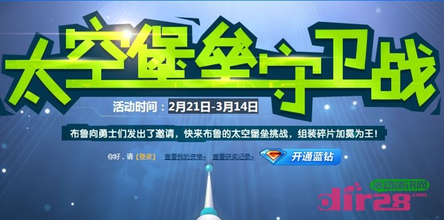 蓝钻贵族参与太空堡垒守卫战拿QQ黄钻,红钻奖励 2014年3月14日结束
