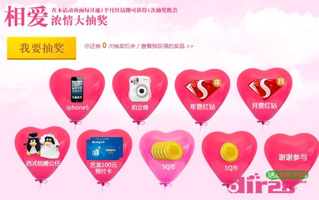 情侣红钻爱你一生一世浓情二月活动拿Iphone5,,Q币,年费红钻 2014年2月28日结束