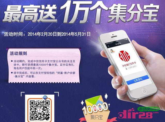 中信信用卡公众号关注活动最高送1万个集分宝 2014年5月31日结束