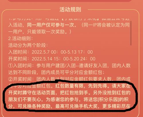 以下图片是之前的活动规则,里面并没有说红包数量有限(为了维权就不打水印,方便大家使用截图,可以点击下面图片进去截图或者保存)
