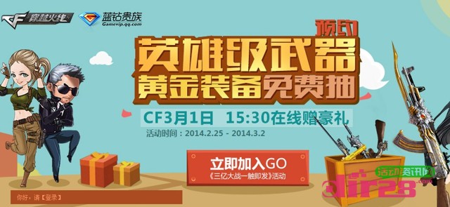 CF预约英雄武器黄金装备免费送活动拿QQ蓝钻 2014年3月2日结束