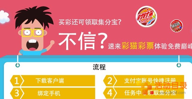 支付宝账号快捷登录彩猫彩票,即可在”任务中心”领取50个集分宝(同一账户限一次),每日签到送5个集分宝,本次活动仅限安卓手机用户。活动目录网站的网友快去参加试试运气吧!