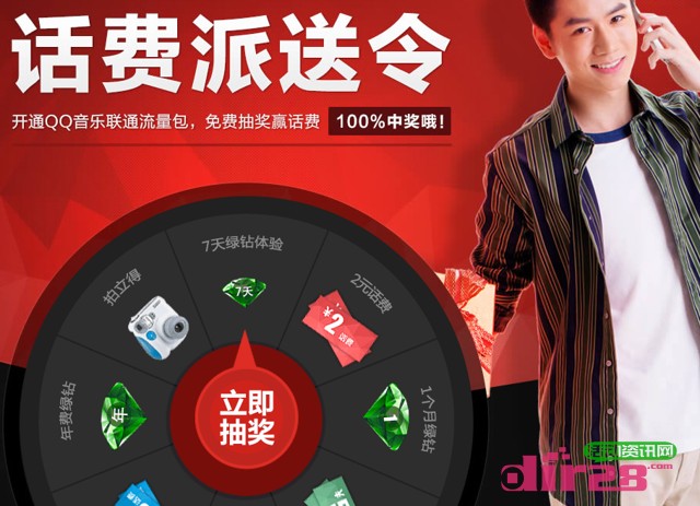 活动期间开通QQ音乐流量包可获得抽奖机会赢取QQ绿钻、话费券,全部话费券均无使用门槛,领取后30天内有效,可在QQ便民使用,单次只能使用1张话费券。活动资讯网的网友快去参加试试运气吧!
