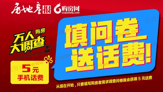 购房网春季发布会2015万人大调查活动送5元手机话费 结束时间未知