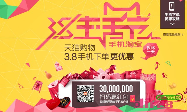 38手机淘宝生活节三千万红包免费送 2014年3月8日结束 发布日期:2014-03-05 15:11:27 / 有奖活动网 • 围观 ... 次 活动介绍: 活动期间仅此3月8日扫码送三千万淘宝红包。活动资讯网的网友快去参加试试运气吧! 活动时间: 3月8日结束 活动奖励: 三千万红包 立即参与:https://www.huodong8.com/1947.html