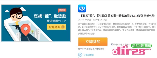 腾讯体验中心地图找茬活动送5Q币无上限 2014年3月20日结束 发布日期:2014-03-07 17:33:06 / QQ活动网 • 围观 ... 次 活动介绍: 参与腾讯地图找茬活动,每个有效反馈即可得到5QB,多报多得,无上限。活动资讯网的网友快去参加试试运气吧! 活动时间: 截止到3月20日 活动奖励: Q币 立即参与:https://www.huodong8.com/1984.html