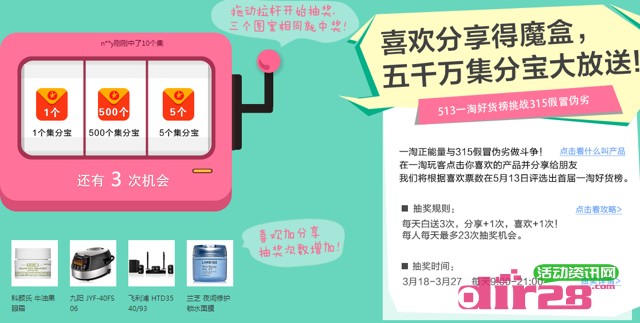 一淘喜欢分享得魔盒,5000万集分宝大放送 2014年3月27日结束