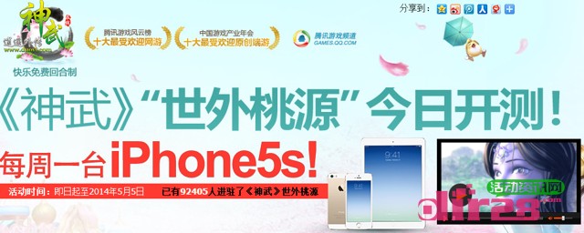 神武世外桃源开测活动送QQ红钻,绿钻,Iphone5s 2014年5月5日结束