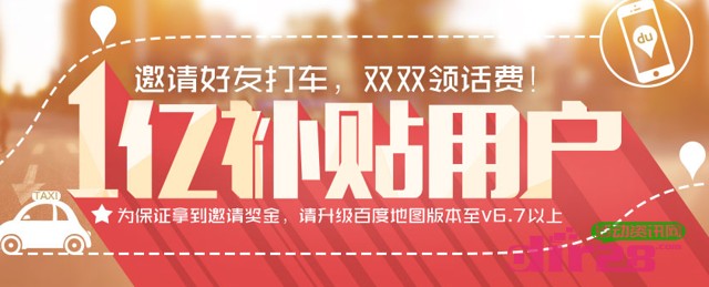 百度一亿补贴用户邀请好友打车活动送50元话费 结束时间未知