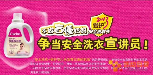 2013年爱护安全洗衣节——不做盲懂妈妈争当安全洗衣宣讲员——活动正式开始,即日起分享爱护相关知识的用户都有机会获得爱护为您提供的各种奖品,分享越多获奖几率越大哟。活动目录网站的网友快去参加试试运气吧!