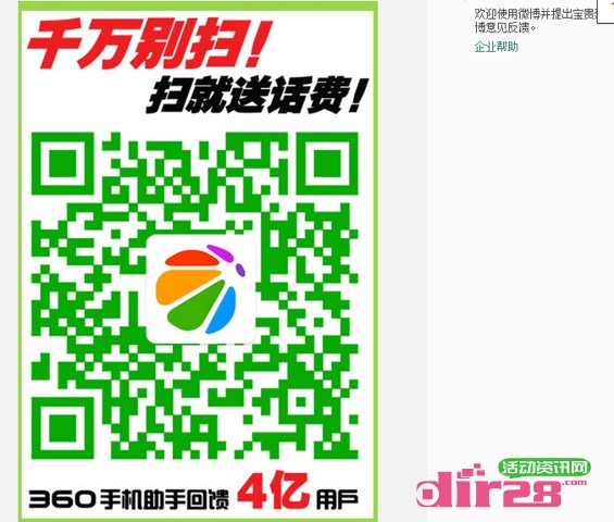 360手机助手扫绿码送4亿元话费,转发还送360随身wifi 结束时间未知 发布日期:2014-04-12 10:22:39 / 有奖活动网 • 围观 ... 次 活动介绍: 活动期间拿起手机扫绿码领取话费,这种福利是不是要转给身边的人?转发还能抽取360随身wifi哦。活动资讯网的网友快去参加试试运气吧! 活动时间: 结束时间未知 活动奖励: 话费,360随身wifi 立即参与:https://www.huodong8.com/2541.html