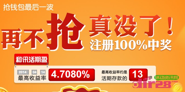 和讯理财客体验活期盈送千万货币基金 2014年4月30日结束