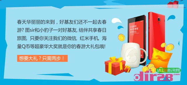 关注腾讯地图,猎豹浏览器微信春日旅图活动送海量Q币,红米手机 结束时间未知 发布日期:2014-04-20 15:04:54 / 微信活动 • 围观 ... 次 活动介绍: 活动期间只要关注腾讯地图以及猎豹浏览器官方微信,即可赢取海量的Q币,红米手机等超多奖品。活动资讯网的网友快去参加试试运气吧! 活动时间: 结束时间未知 活动奖励: Q币,红米手机 立即参与:https://www.huodong8.com/2778.html