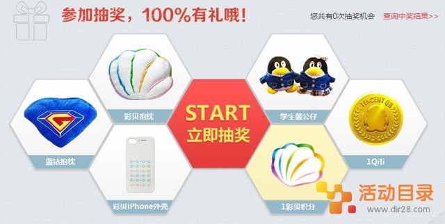 关注彩贝微信可以获得3次抽奖机会、订阅彩贝资讯邮件可以获得2次抽奖机会、收听彩贝微博可以获得1次抽奖机会,虚拟类奖品最晚24小时到账,所有实物奖品将在活动结束后的10个工作日内快递出去。活动目录网站的网友快去参加试试运气吧