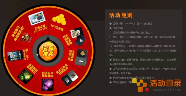 活动期间每个用户每天有一次抽奖机会,奖品为Q币,轩辕虚拟道具,实物大奖三种,Q币是实时到账的。活动目录网站的网友快去参加试试运气吧