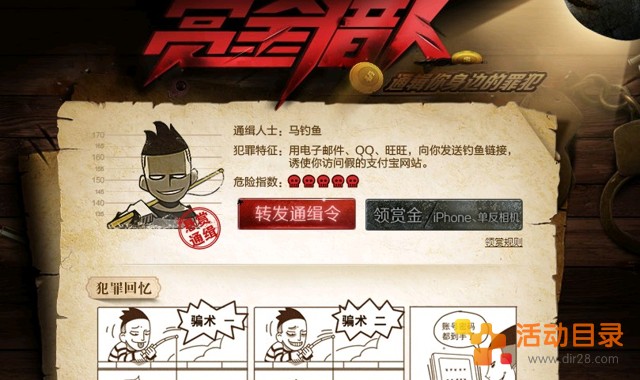 用户读完通缉令页面,同时扩散通缉令,即可参加抽奖。.凡是同一账户及关联子账户、同一联系方式、同一联系人均默认为同一用户。本次活动包含8页通缉令,在抽奖环节,一个用户每转发一张通缉令便可抽奖一次,同一用户最多可抽奖8次。最少赢取5集分宝1次,集分宝实时到账。。活动目录网站的网友快去参加试试运气吧!