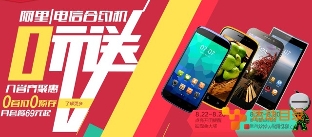 聚划算阿里云电信合约机0元送有奖活动 2013年8月30日结束