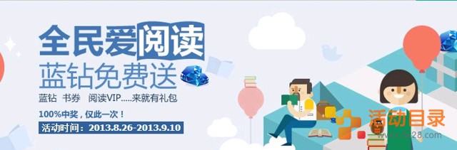 全民爱阅读100%领书券抽奖拿Q币蓝钻 2013年9月10日结束
