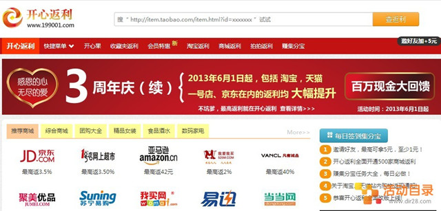 开心返利 签到做任务每日领取50集分宝2013年12月31日结束