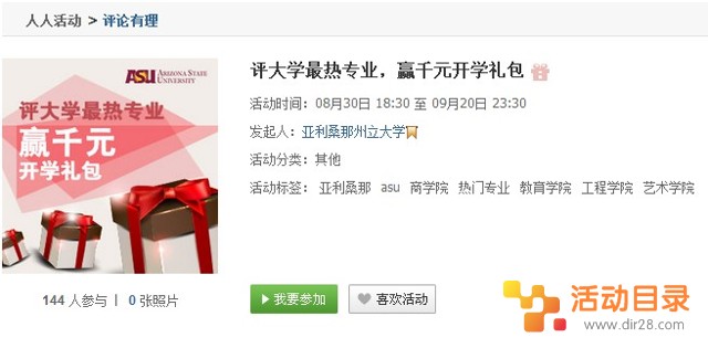 人人活动评大学最热专业,赢千元开学礼包 2013年9月20日结束