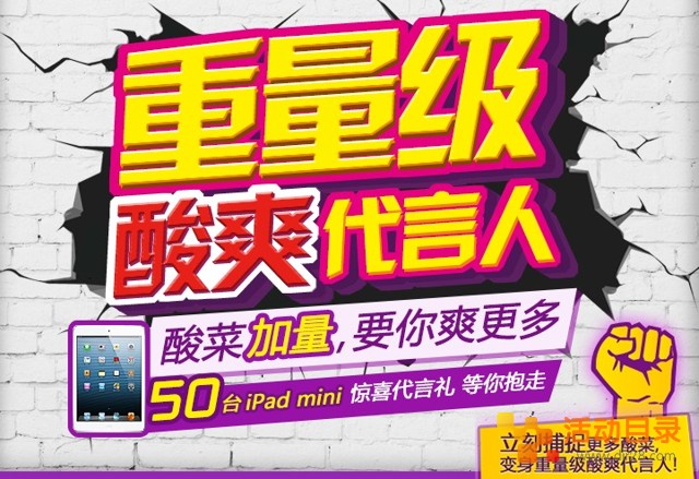 老坛酸菜牛肉面重量级酷爽代言人活动送Ipad Mini 2013年11月7日结束