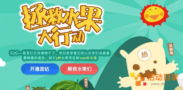 QQ蓝钻拯救水果大行动解救水果拿6666成长值 1.5万游戏币 2013年9月15日结束