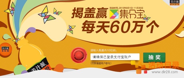美之源果粒橙揭盖有奖每天送出60万个集分宝 2013年11月30日结束