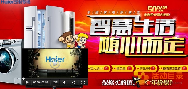 天猫 海尔专场智慧生活全场5折再抢免单 限时折扣10月8日止 发布日期:2013-09-05 09:33:08 / 打折秒杀网 • 围观 ... 次 活动介绍: 海尔专场智慧生活随心而定,你的家电你做主,全场定制价仅需5折起;更有买大送小、省定金、夺免单、抢青岛3日游等活动。活动目录网站的网友快去抢购吧! 打折时间: 9月5日-10月8日 活动地址:https://www.huodong8.com/710.html