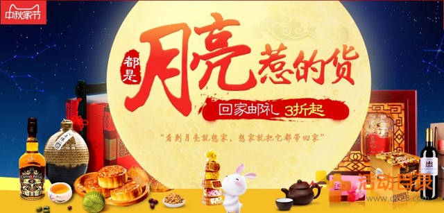天猫 中秋家节都是月亮惹的货 回家邮礼3折起 限时折扣9月12日止 发布日期:2013-09-05 10:43:37 / 打折秒杀网 • 围观 ... 次 活动介绍: 人心盼团圆,越抢月越圆,天猫中秋家节专场全场3折起抢购,更多超多优惠券搭配,太晚专场福“抽”中秋活动,花少量的钱,过一个最舒心的中秋。活动目录网站的网友快去抢购吧! 打折时间: 9月3日-9月12日 活动地址:https://www.huodong8.com/718.html