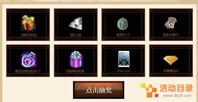 在活动期间新注册角色玩家,可直接获得大礼包;同时,御龙在天用户每天可以获得一次抽奖机会,黄钻用户每天额外加一次抽奖机会。活动目录网站的网友快去参加试试运气吧!