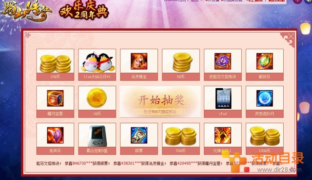 蜀山传奇2周年欢乐庆典抽奖拿100Q币 2013年9月25日结束