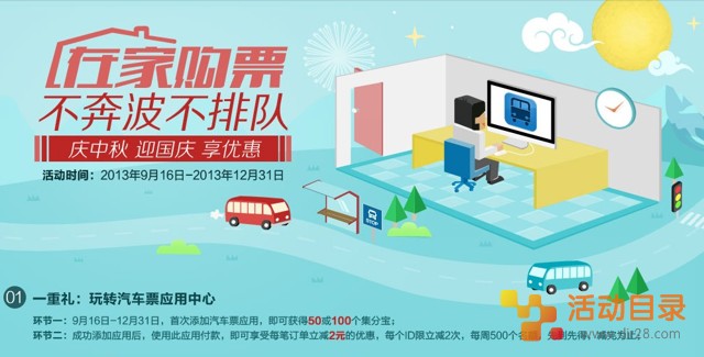 玩转汽车票应用中心,首次添加汽车票应用,即可获得50或100个集分宝;添加应用后所获得的集分宝,会在次月15日之前发放至您的支付宝帐户中。活动目录网站的网友快去参加试试运气吧!